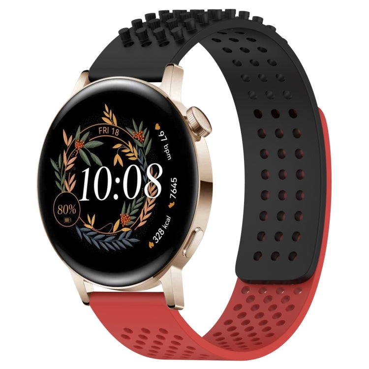 Correa de silicona para Huawei Watch GT3 42mm 20mm con agujeros y puntos 3D transpirables (Negro + Rojo)