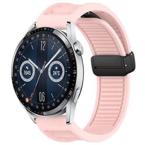 Correa de Silicona para Huawei Watch GT3 46mm 22mm con Hebilla Magnética Plegable (Rosa)