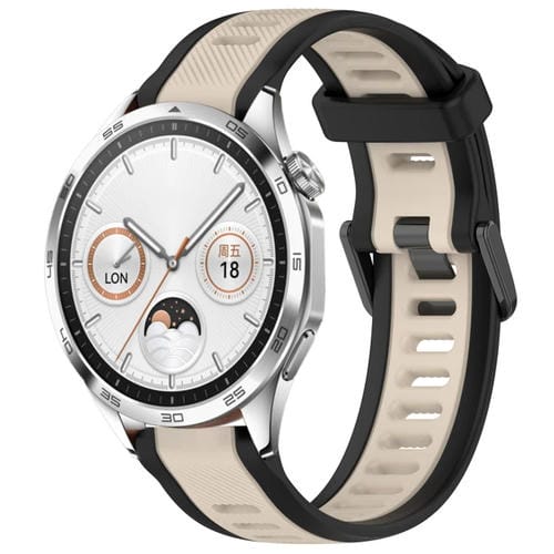 Correa de Silicona para Huawei Watch GT4 46mm 22mm Texturizada Dos Colores (Starlight + Negro)