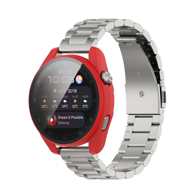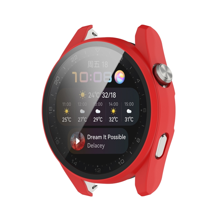 Caja Protectora + Vidrio Templado para Huawei Watch3 Pro (Rojo)