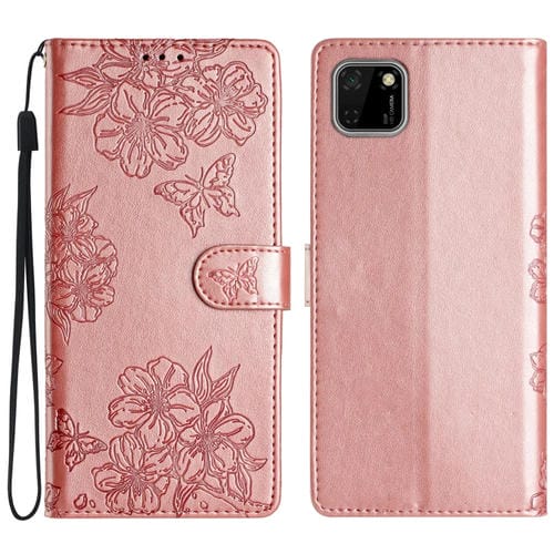 Funda para Huawei Y5P Honor 9S Cherry Blossom Butterfly Skin Feel PU en Relieve (Oro Rosa)