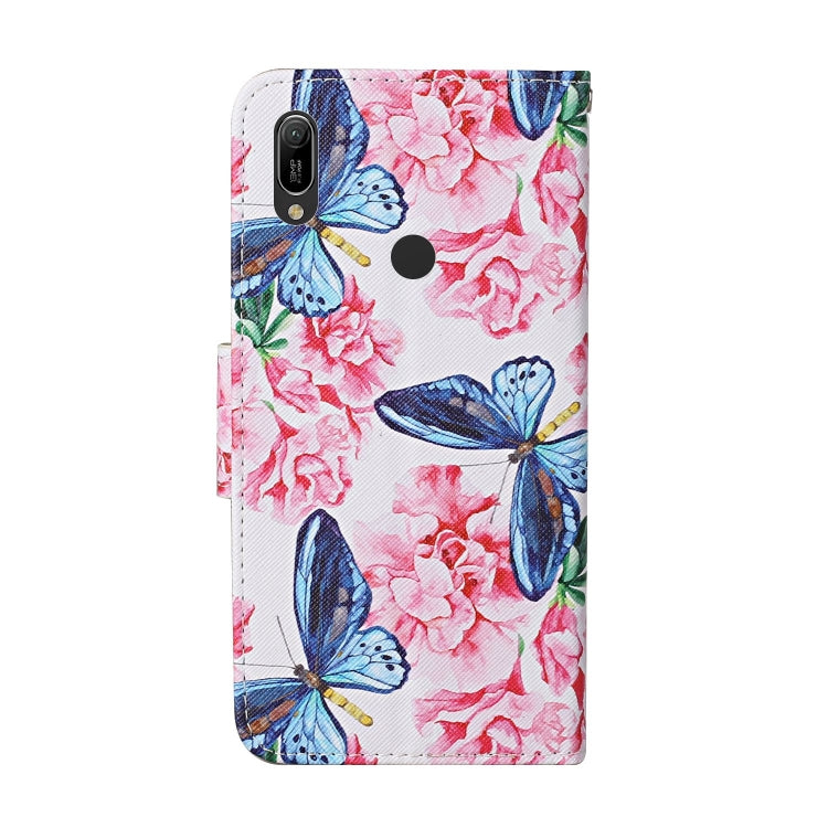 Estuche de Cuero Abatible Horizontal para Huawei Y6 (2019) con Soporte, Ranuras y Billetera (Flor de Libélula)