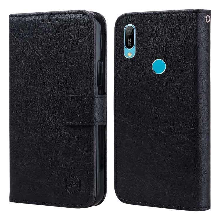 Funda para Huawei Y6 2019 Sensación de Piel Aceite Textura de Cuero PU + TPU (Negro)