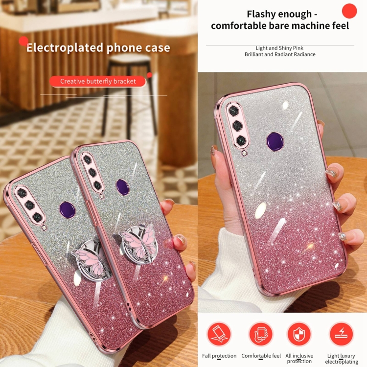 • 1x Estuche TPU Huawei Y6P con Soporte de Mariposa y Brillo Degradado (Azul Sierra)
