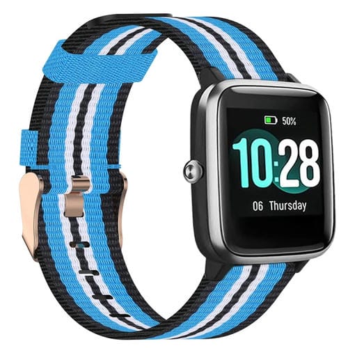 Banda de Reloj Trenzada de Nylon para Id205 19mm (Negro+Azul)