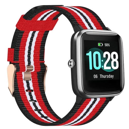 Banda de Reloj Trenzada de Nylon para Id205 19mm (Negro+Rojo)