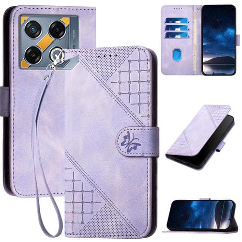 Funda de Cuero con Tapa para Infinix GT 20 Pro 5G YX0080 con Patrón Grid Butterfly y Cordón (Púrpura Claro)