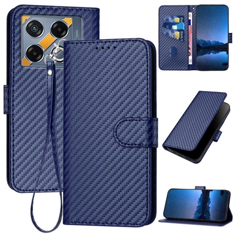 Funda de Cuero para Infinix GT 20 Pro YX0070 con Hebilla de Fibra de Carbono y Cordón (Azul Real)