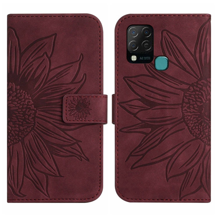 Funda de Cuero Flip para Infinix Hot 10S / 10S Nfc con Cordón y Diseño Sun Flower (Rojo Vino)