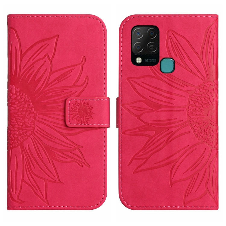 Funda de Cuero Flip para Infinix Hot 10S / 10S Nfc con Cordón y Diseño Sun Flower (Rose Red)