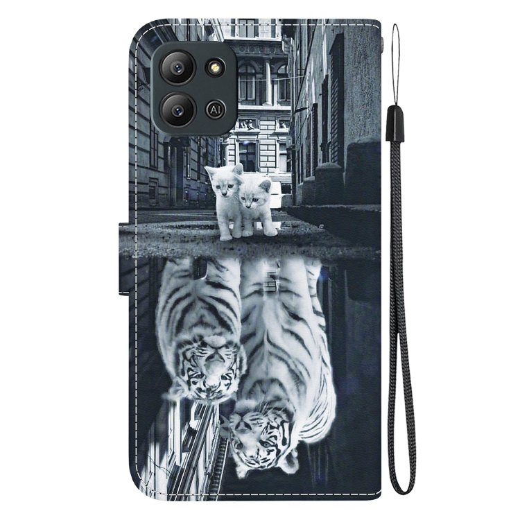 Funda para Infinix Hot 11 2022 de Cuero con Dibujo Coloreado y Textura de Cristal (Reflejo de Tigre Gato)