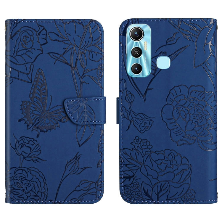Funda de Cuero para Infinix Hot 11 HT03 con Tapa en Relieve Skin Feel Butterfly (Azul)