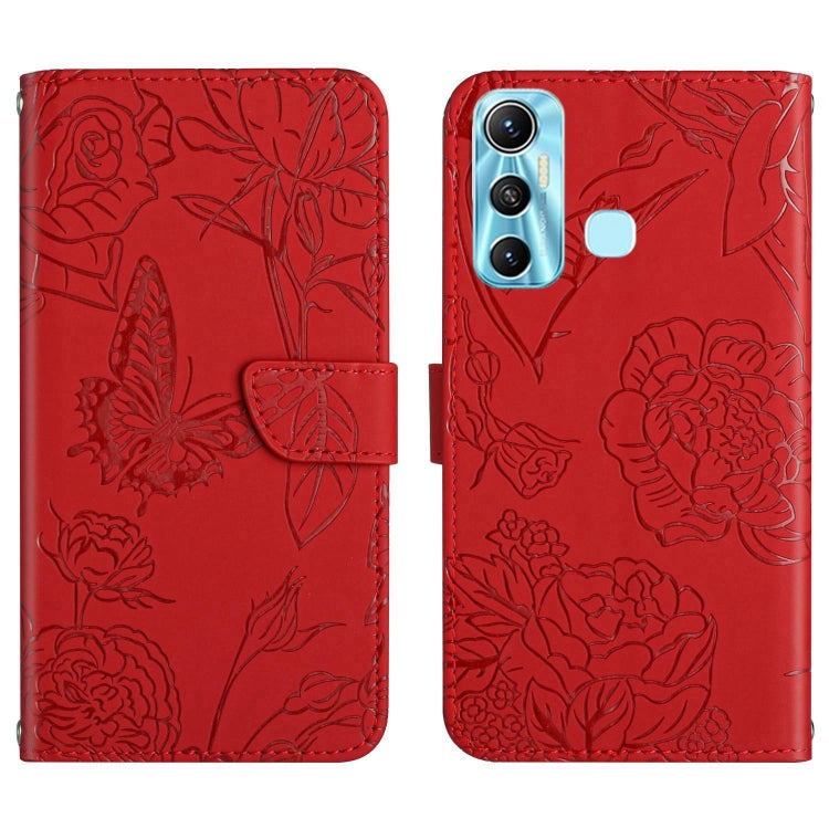 Funda de Cuero para Infinix Hot 11 Ht03 Skin Feel Butterfly con Tapa en Relieve (Rojo)