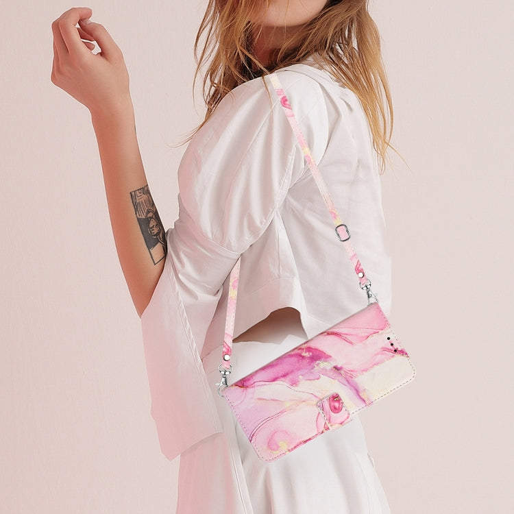Para Infinix Hot 11s NFC Crossbody Funda de teléfono de cuero con patrón de mármol pintado (oro rosa)