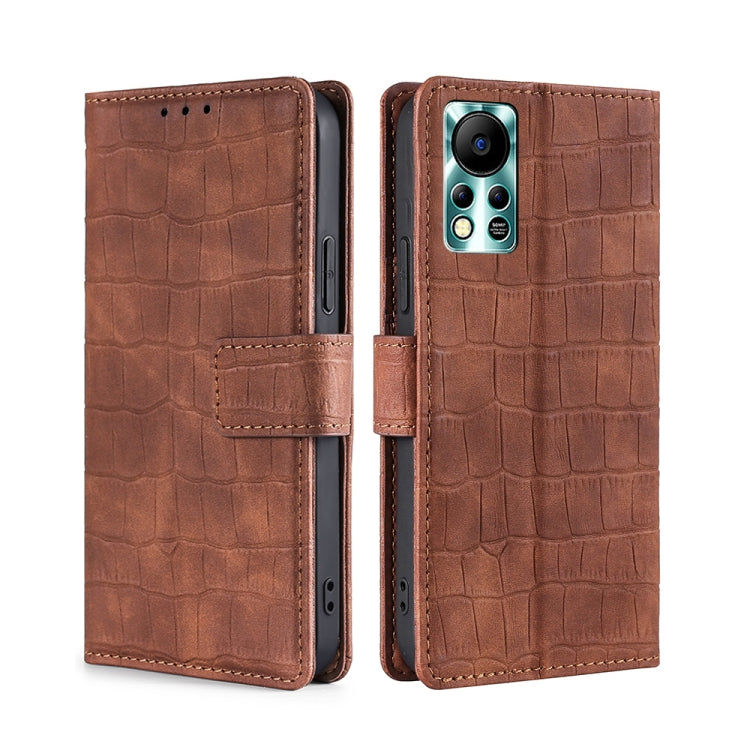 Funda de Cuero Infinix Hot 11S NFC Skin Feel Cocodrilo con Cierre Magnético (Marrón)