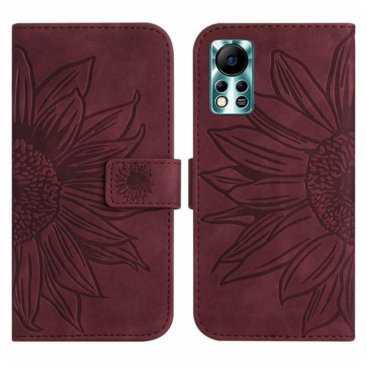 Funda de Cuero Flip para Infinix Hot 11S NFC con Cordón y Diseño Sun Flower (Rojo Vino)