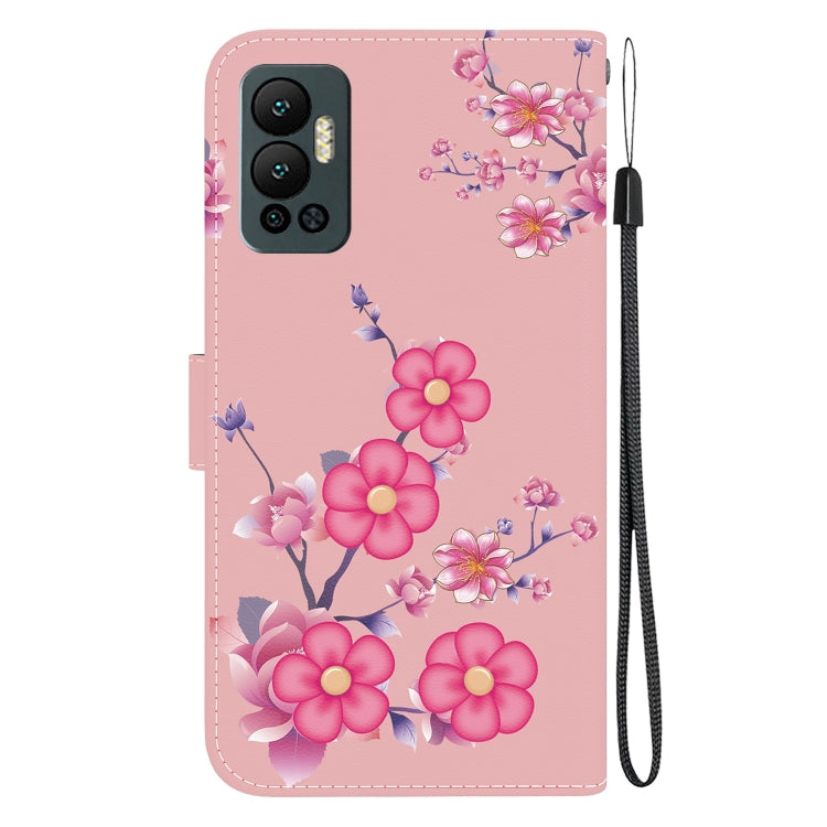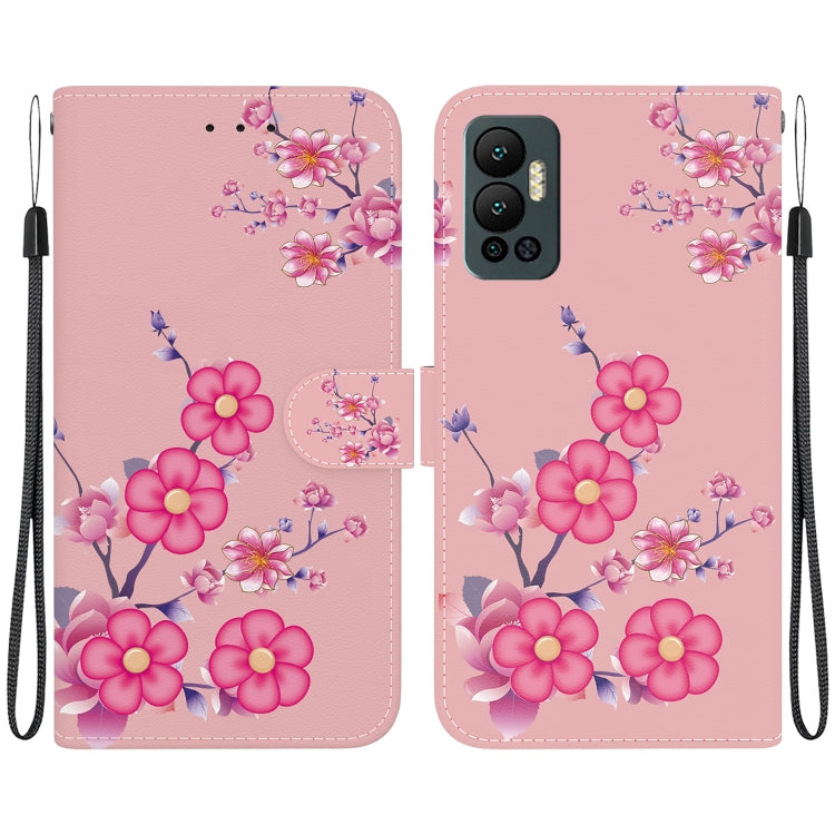 Estuche de Cuero para Infinix Hot 12 con Dibujo Coloreado y Textura de Cristal (Flores de Cerezo)