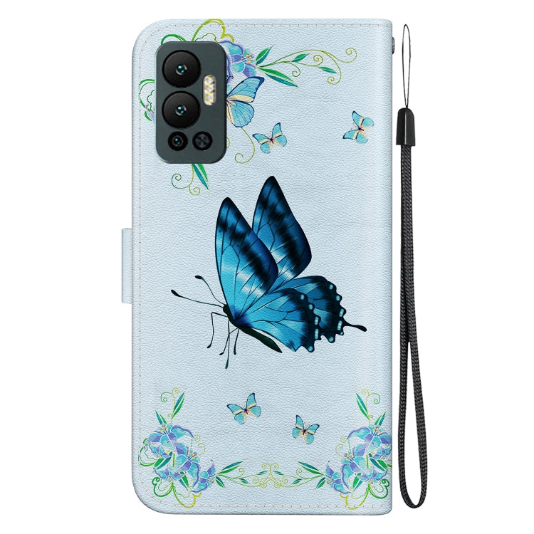 Estuche de Cuero para Infinix Hot 12 con Dibujo Coloreado y Textura de Cristal (Pensamientos Azules)