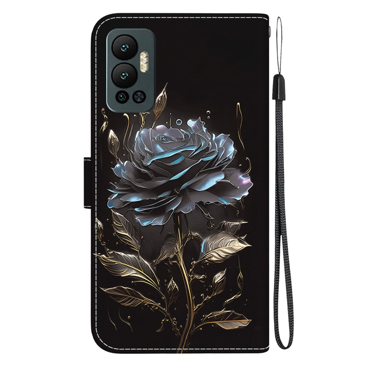 Estuche de Cuero para Infinix Hot 12 con Dibujo Coloreado y Textura de Cristal (Rosa Negra)