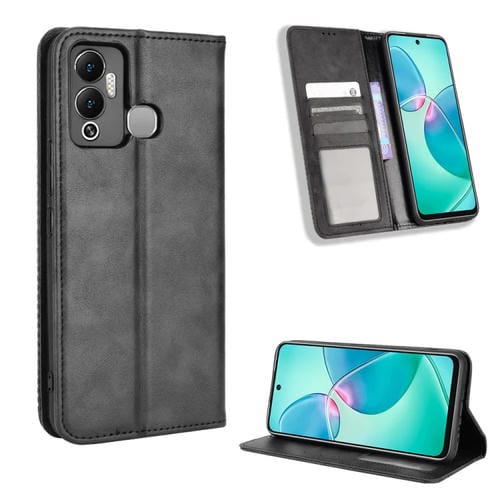 Funda de Cuero para Infinix Hot 12 Play con Textura Retro y Hebilla Magnética (Negro)