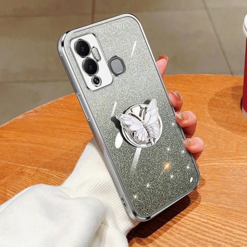 Funda para Infinix Hot 12 Play TPU con Soporte de Mariposa y Brillo Degradado (Plata)