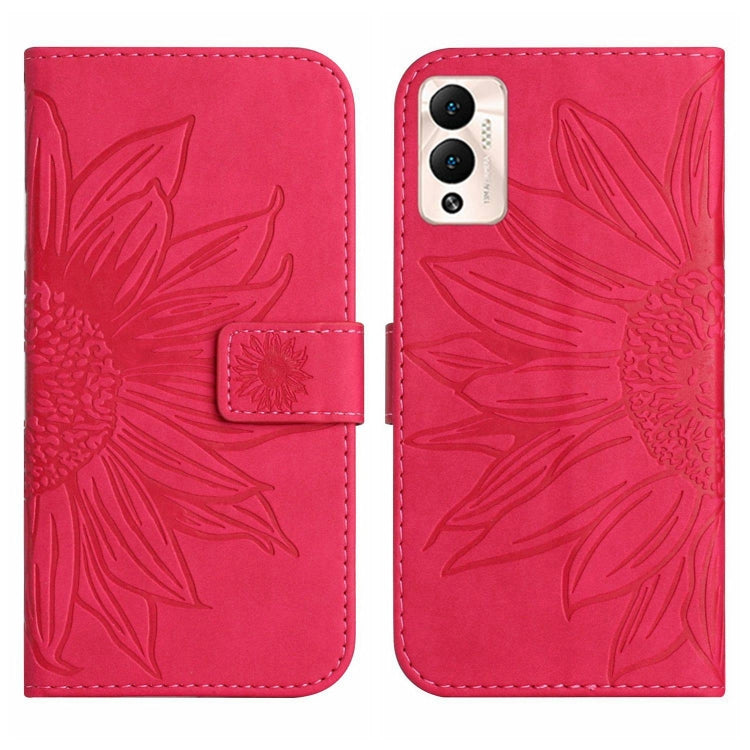 Funda de Cuero Flip con Cordón para Infinix Hot 12 Play Skin Feel Sun Flower (Rose Red)