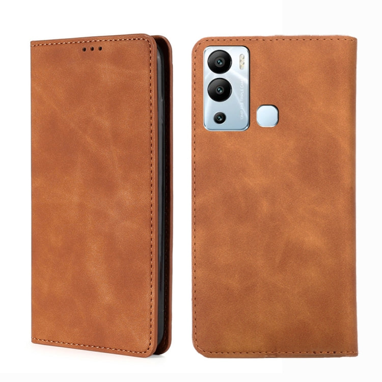 Funda de Cuero para Infinix Hot 12I Skin Feel con Tapa Horizontal Magnética (Marrón Claro)