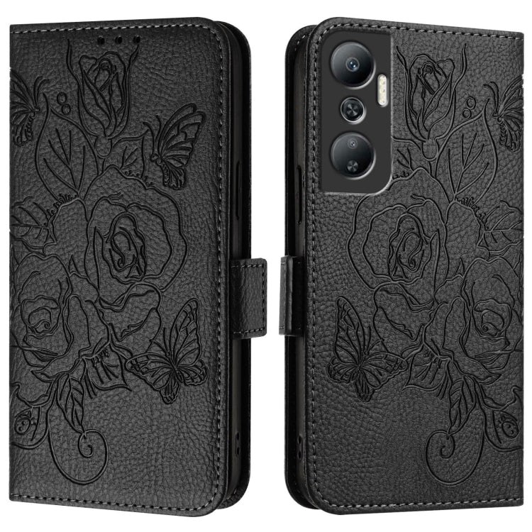 Estuche de Cuero Antirrobo Rfid para Infinix Hot 20 4G con Relieve Rosa (Negro)