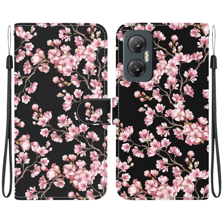 Estuche de Cuero para Infinix Hot 20 5G con Dibujo Coloreado y Textura de Cristal (Flor de Ciruelo)