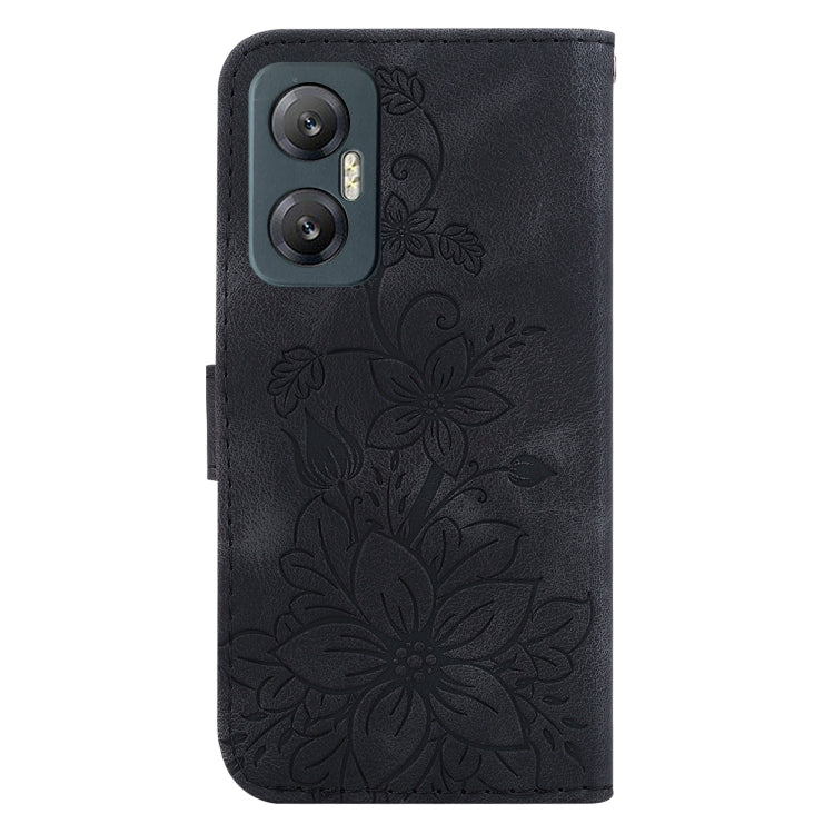 Estuche de Teléfono Infinix Hot 20 5G Lily de Cuero en Relieve (Negro)