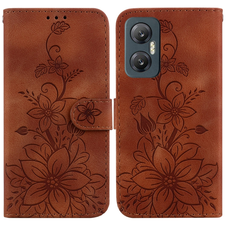 Funda de Cuero En Relieve para Infinix Hot 20 5G Lily (Marrón)