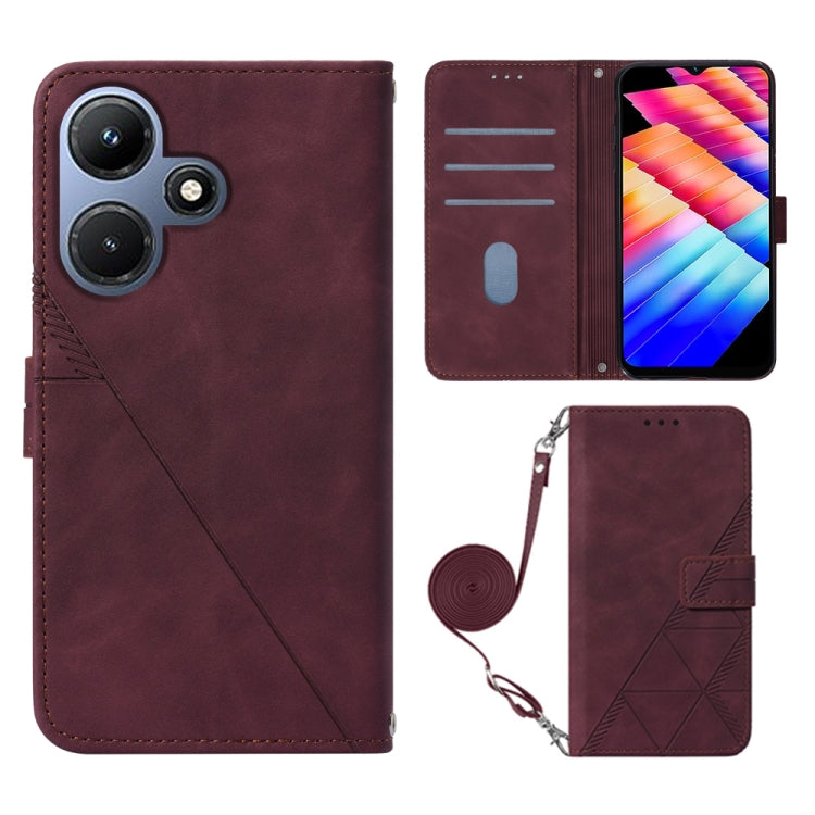 Funda de Cuero Crossbody 3D para Infinix Hot 30I / X669 con Tapa En Relieve (Rojo Vino)