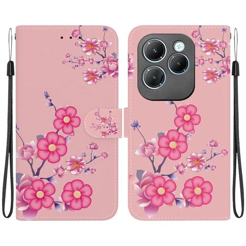 Funda de Cuero para Infinix Hot 40/40 Pro con Dibujo Coloreado y Textura de Cristal (Flores de Cerezo)