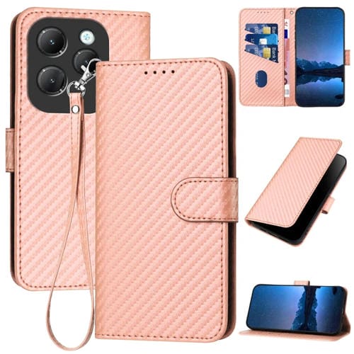 Funda de Cuero Infinix Hot 40 Hot 40 Pro 4G Yx0070 con Hebilla de Fibra de Carbono y Cordón (Rosa)