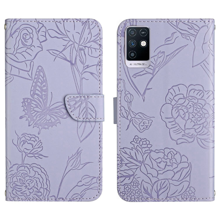 Funda de Cuero para Infinix Note 10 HT03 Skin Feel Butterfly con Tapa en Relieve (Púrpura)