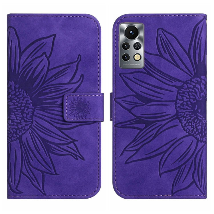 Funda de Cuero Flip para Infinix Note 11 Pro y Note 11S con Cordón y Diseño Sun Flower (Morado Oscuro)