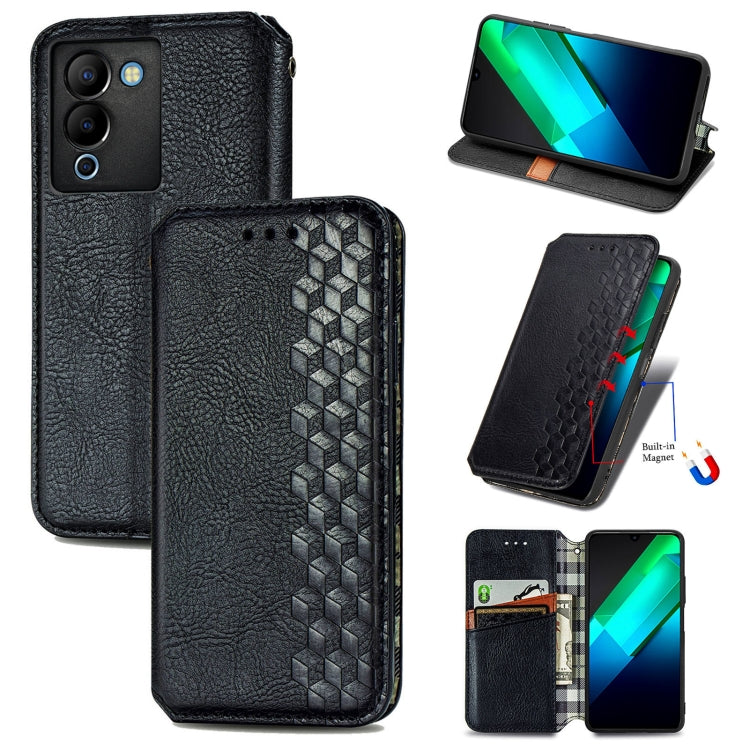 Caja de teléfono para Infinix Note 12 G96 de cuero magnético prensado con rejilla cúbica (Negro)