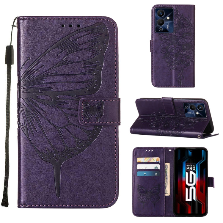 Estuche para Infinix Note 12 Pro 5G de Cuero con Tapa de Mariposa en Relieve (Púrpura Oscuro)