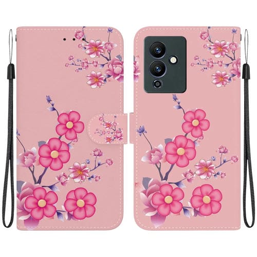 Funda de Cuero para Infinix Note 12 Pro 5G con Dibujo Coloreado y Textura de Cristal (Flores de Cerezo)