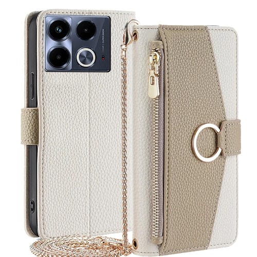 Funda Cruzada de Cuero para Infinix Note 40 4G con Textura Litchi (Blanco)
