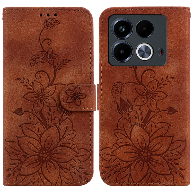 Funda de Cuero En Relieve para Infinix Note 40 4G Lily (Marrón)