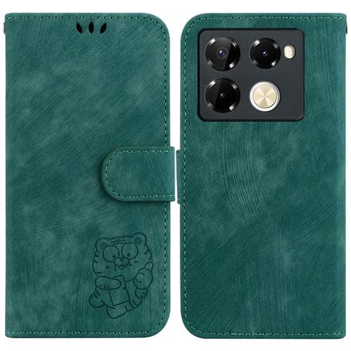 Funda de Cuero para Infinix Note 40 Pro 4G/5G con Relieve Little Tiger (Verde)