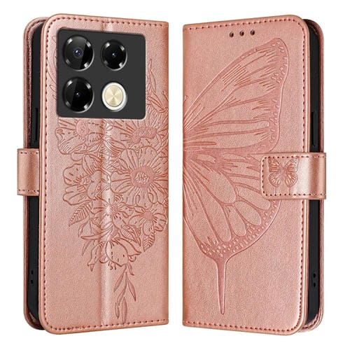 Funda de Cuero para Infinix Note 40 Pro 4G con Mariposa en Relieve (Oro Rosa)