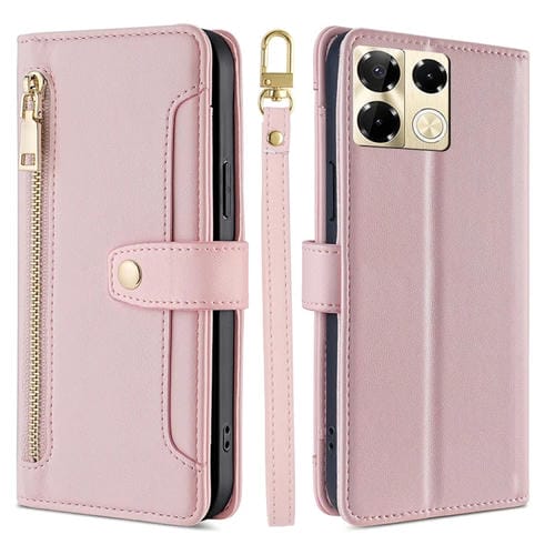Funda de Cuero para Infinix Note 40 Pro 5G con Billetera y Cremallera (Rosa)