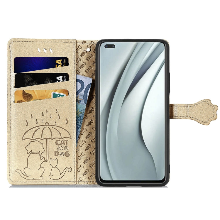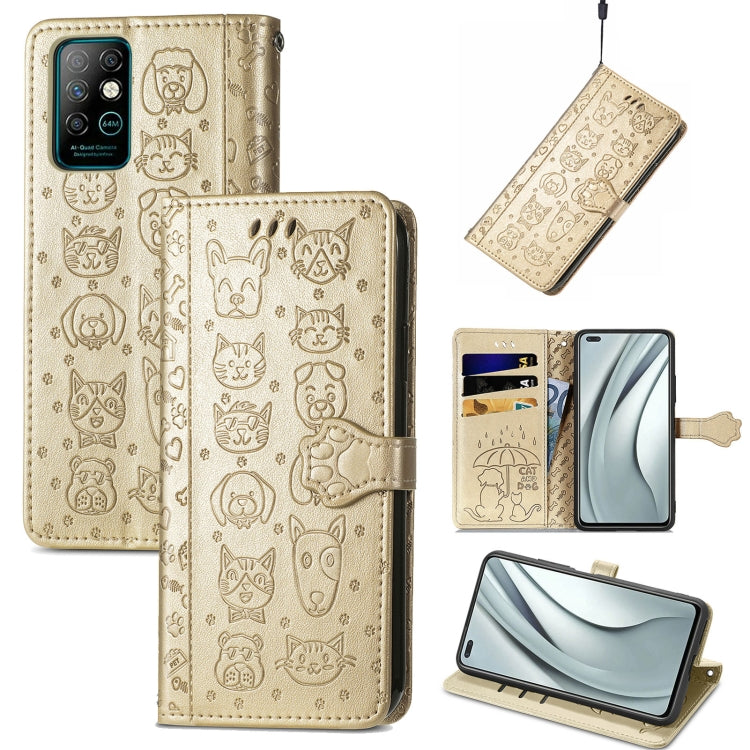 Funda de Cuero para Infinix Note 8 con Estampado de Gato y Perro, Soporte, Ranuras y Cordón (Oro)