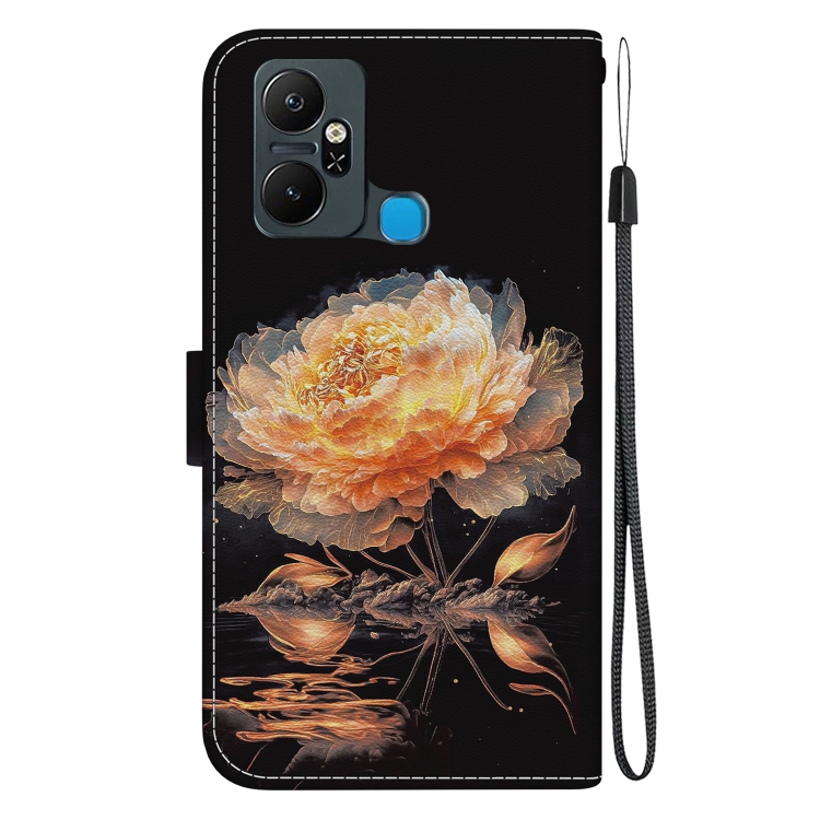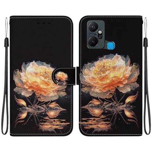 Funda de Cuero para Infinix Smart 6 Plus con Dibujo Coloreado y Textura de Cristal (Peonía Dorada)