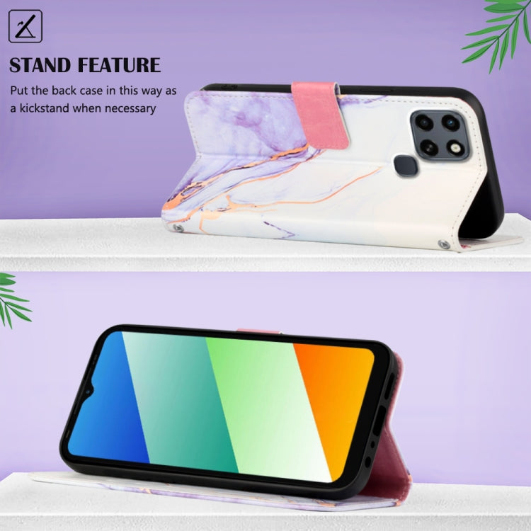 Funda de Teléfono Infinix Smart 6 Plus X6823 Pt003 con Tapa de Cuero y Patrón Mármol (Blanco Púrpura)