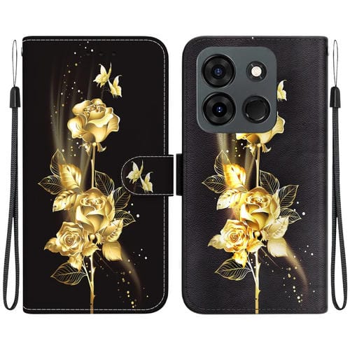 Funda para Infinix Smart 7 de Cuero con Dibujo Coloreado y Textura de Cristal Indio (Mariposa Dorada Rosa)