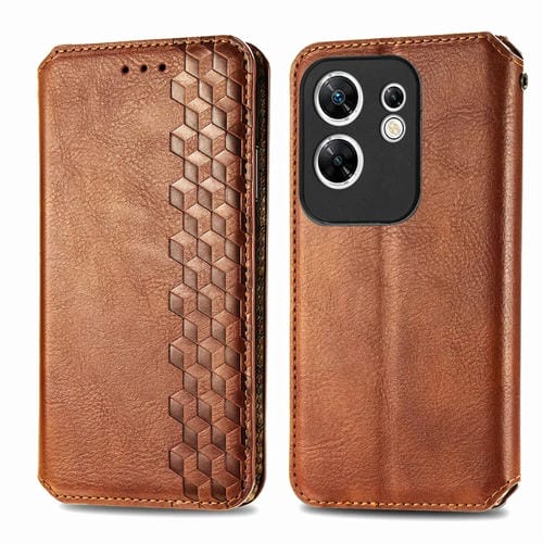 Funda de Cuero Magnético Prensado para Infinix Zero 30 4G Cubic Grid (Marrón)