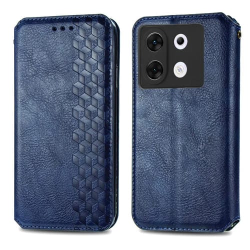 Funda de Cuero Magnético Prensado Cubic Grid para Infinix Zero 30 5G (Azul)